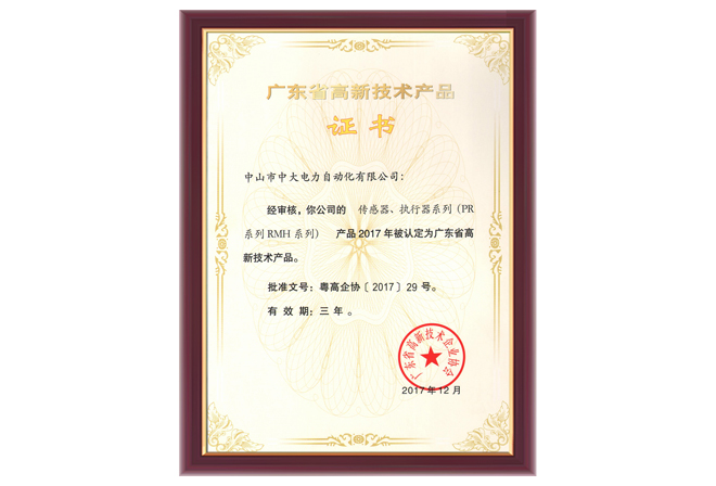 PR系列RMH系列高新技術產品證書